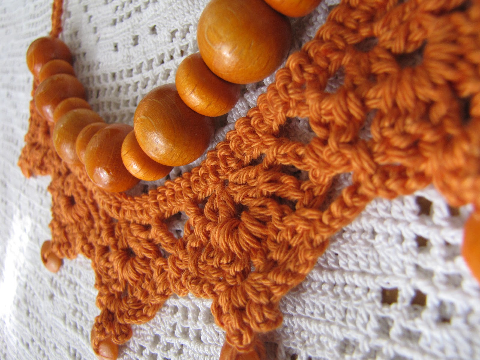 I love the burnt orange color and the crochet is beautiful. So unique!