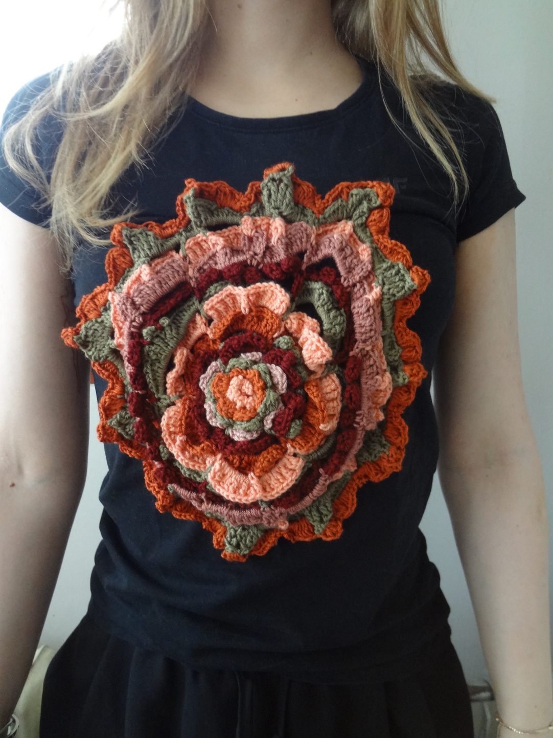 I am designing a flower top, and this is how it will look at the front. When measuring it on Eva, she suggested it might also work well as an applique - to decorate a plain tee, and I think that  is one great idea. Only if that is the case, I think it should be a couple of rounds smaller than this.
